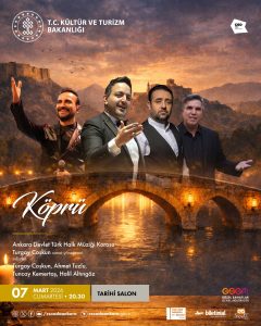 “Köprü” konseri, 7 Mart 2026 tarihinde Ankara’da CSO Ada Ankara Tarihi Salon’da gerçekleştirilecek. Kültür ve sanatın birleştirici gücünü yansıtan etkinlik, tasavvuf musikisi ve klasik Türk müziği repertuvarına ilgi duyan tüm sanatseverlere açık olacak.